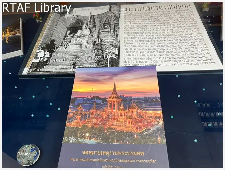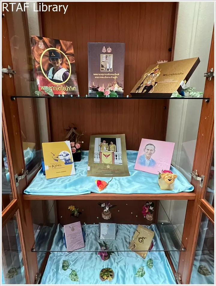 หอสมุดกองทัพอากาศ กองวิทยบริการ กรมยุทธศึกษาทหารอากาศ ได้จัดตู้นิทรรศการ "น้อมรำลึกในพระมหากรุณาธิคุณ พระบาทสมเด็จพระบรมชนกาธิเบศร มหาภูมิพลอดุลยเดชมหาราช บรมนาถบพิตร" เนื่องในวันคล้ายวันสวรรคตพระบาทสมเด็จพระบรมชนกาธิเบศร มหาภูมิพลอดุลยเดชมหาราช บรมนาถบพิตร ๑๓ ตุลาคม ๒๕๖๕ เพื่อแสดงความจงรักภักดี และน้อมรำลึกในพระมหากรุณาธิคุณ ที่ทรงปฏิบัติพระราชกรณียกิจนานัปการ เพื่อความเจริญรุ่งเรืองของประเทศชาติ และความผาสุกของอาณาประชาราษฎร์ ณ ชั้น ๑ อาคารหอสมุดกองทัพอากาศ