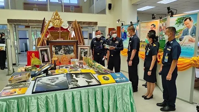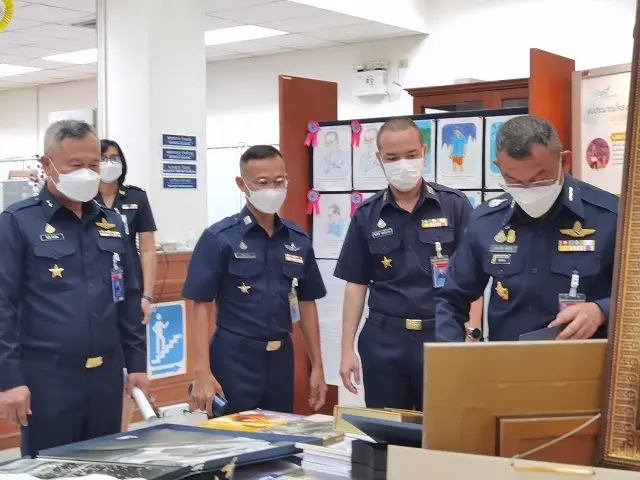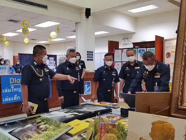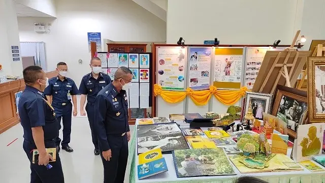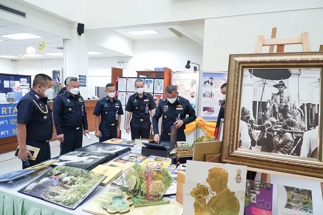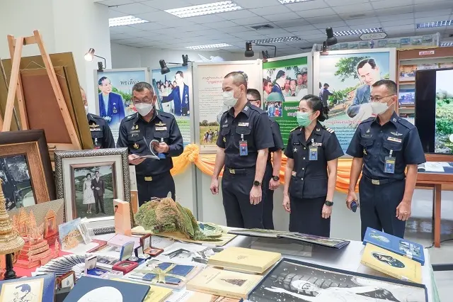 พลอากาศโท ประกาศิต เจริญยิ่ง เจ้ากรมยุทธศึกษาทหารอากาศ, พลอากาศตรี วันชัย พึ่งเจียม เสนาธิการกรมยุทธศึกษาทหารอากาศ และคณะเยี่ยมชม "นิทรรศการเฉลิมพระเกียรติในหลวง รัชกาลที่ ๙" เนื่องในวันคล้ายวันพระบรมราชสมภพ พระบาทสมเด็จพระบรมชนกาธิเบศร มหาภูมิพลอดุลยเดชมหาราช บรมนาถบพิตร วันชาติ และวันพ่อแห่งชาติ เพื่อน้อมรำลึกในพระมหากรุณาธิคุณ ที่ทรงปฏิบัติพระราชกรณียกิจนานัปการ เพื่อความเจริญรุ่งเรืองของประเทศชาติ และความผาสุกของอาณาประชาราษฎร์ เมื่อวันที่ ๒ ธันวาคม ๒๕๖๕ ณ ชั้น ๑ อาคารหอสมุดกองทัพอากาศ โดยนิทรรศการฯ จะจัดแสดงตลอดเดือนธันวาคม ๒๕๖๕