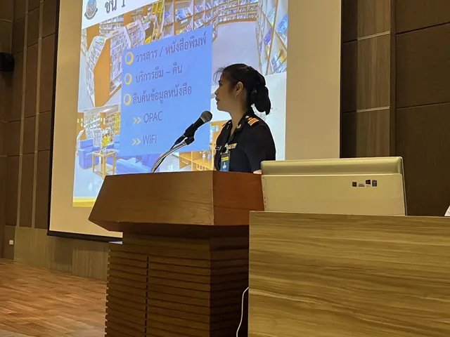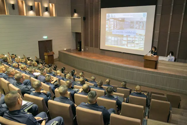 น.ต.หญิง พรธิดา ทรัพย์ปาน ผช.บณร.หสม.ทอ.ยศ.ทอ.ให้การต้อนรับและบรรยายแนะนำการใช้บริการหอสมุดกองทัพอากาศ แก่นายทหารนักเรียน หลักสูตร รร.สธ.ทอ.ยศ.ทอ.รุ่นที่ ๖๘ ในโอกาสเข้าเยี่ยมชมกิจการหอสมุดกองทัพอากาศ เมื่อวันที่ ๒๖ ตุลาคม ๒๕๖๖ ณ หอสมุดกองทัพอากาศ
