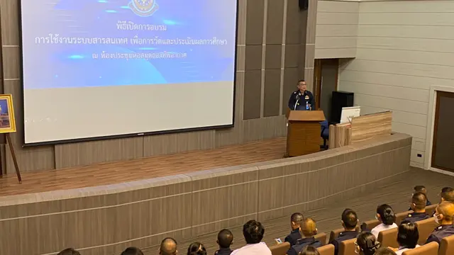 พลอากาศโท ประกาศิต เจริญยิ่ง เจ้ากรมยุทธศึกษาทหารอากาศ เป็นประในพิธีเปิดการอบรมการใช้งานระบบสารสนเทศเพื่อการวัดและประเมินผลการศึกษา เมื่อวันที่ ๘ สิงหาคม ๒๕๖๖ ณ ห้องประชุมหอสมุดกองทัพอากาศ กองวิทยบริการ กรมยุทธศึกษาทหารอากาศ โดยได้รับเกียรติจาก พลอากาศตรี สมนึก โพธิ์ศรี ผู้อำนวยการศูนย์ซอฟต์แวร์กองทัพอากาศ พร้อมคณะผู้บรรยายให้ความรู้การใช้งานระบบสารสนเทศเพื่อการวัดและประเมินผลการศึกษา เพื่อให้ผู้เข้ารับการอบรมมีความรู้ ความเข้าใจ และมีทักษะในการใช้งานระบบได้อย่างถูกต้องและมีประสิทธิภาพ ซึ่งจะเป็นการยกระดับการปฏิบัติงานของกรมยุทธศึกษาทหารอากาศ ให้เป็นองค์กรต้นแบบที่รองรับความเป็น Digital Airforce อย่างสมบูรณ์
