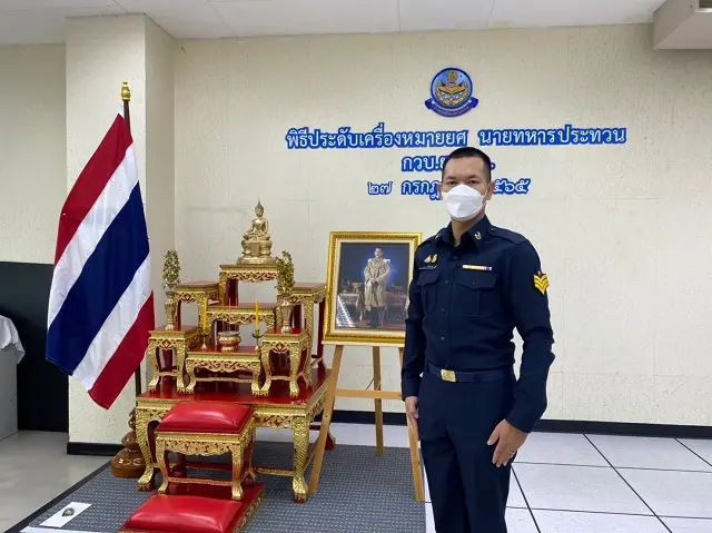 น.อ.จิรศักดิ์ เทพอัตถาพร หก.กวบ.ยศ.ทอ. เป็นประธานพิธีประดับเครื่องหมายยศนายทหารประทวน ให้แก่ จ่าอากาศโท ภูวดล ลี้ตั้งเจริญ เนื่องในโอกาสเลื่อนยศเป็น จ่าอากาศเอก เมื่อวันที่ ๒๗ กรกฏาคม ๒๕๖๕ ณ กองวิทยบริการ กรมยุทธศึกษาทหารอากาศ