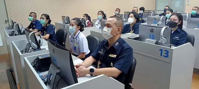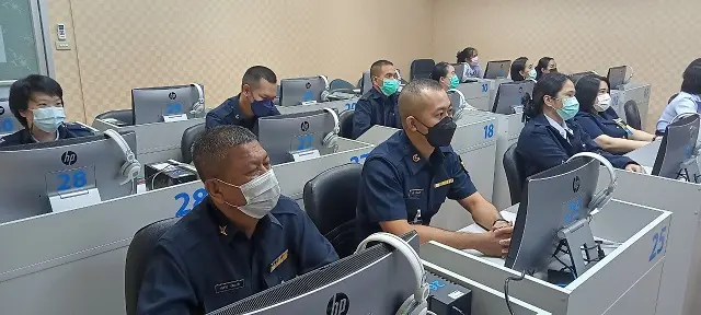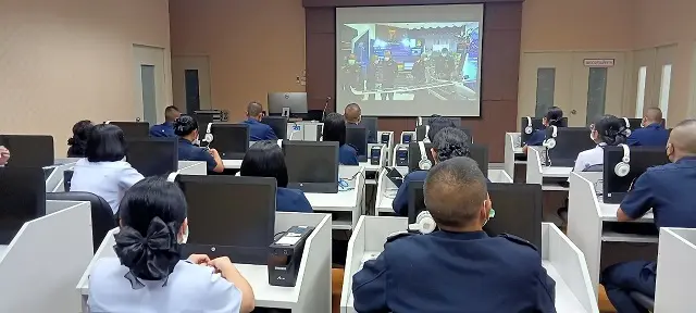 น.อ.จิรศักดิ์ เทพอัตถาพร หก.กวบ.ยศ.ทอ.พร้อมด้วย ข้าราชการ ลูกจ้างและพนักงานราชการ กวบ.ยศ.ทอ.ร่วมชมถ่ายทอดสดงานมหกรรมการจัดการความรู้ นวัตกรรม และกิจกรรมพัฒนาคุณภาพกองทัพอากาศ ครั้งที่ ๓๘ ประจำปี ๒๕๖๕ เมื่อวันที่ ๙ สิงหาคม ๒๕๖๕ ณ ห้องเรียนสารสนเทศ ยศ.ทอ.