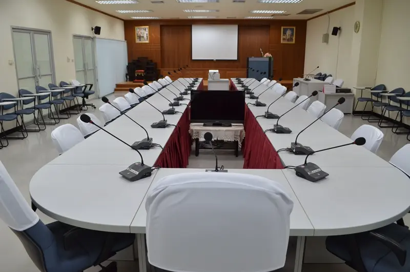 ๔. อุปกรณ์ที่ให้บริการ: เครื่องเสียงพร้อมลำโพง ๑ ชุด / ไมโครโฟนตั้งตัว ๒๖ ตัว / ไมโครโฟนแบบสาย ๑ ตัว (ติดตั้งบนแท่นยืนบรรยาย) โปรเจคเตอร์ ๑ ตัว / จอภาพแบบแขวนขนาด ๗๐ นิ้ว ๑ จอ