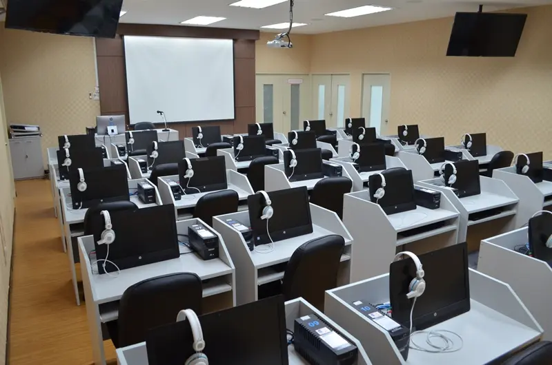 ๔. อุปกรณ์ที่ให้บริการ: คอมพิวเตอร์แบบตั้งโต๊ะจำนวน ๓๐ เครื่องพร้อมไมโครโฟนและหูฟัง